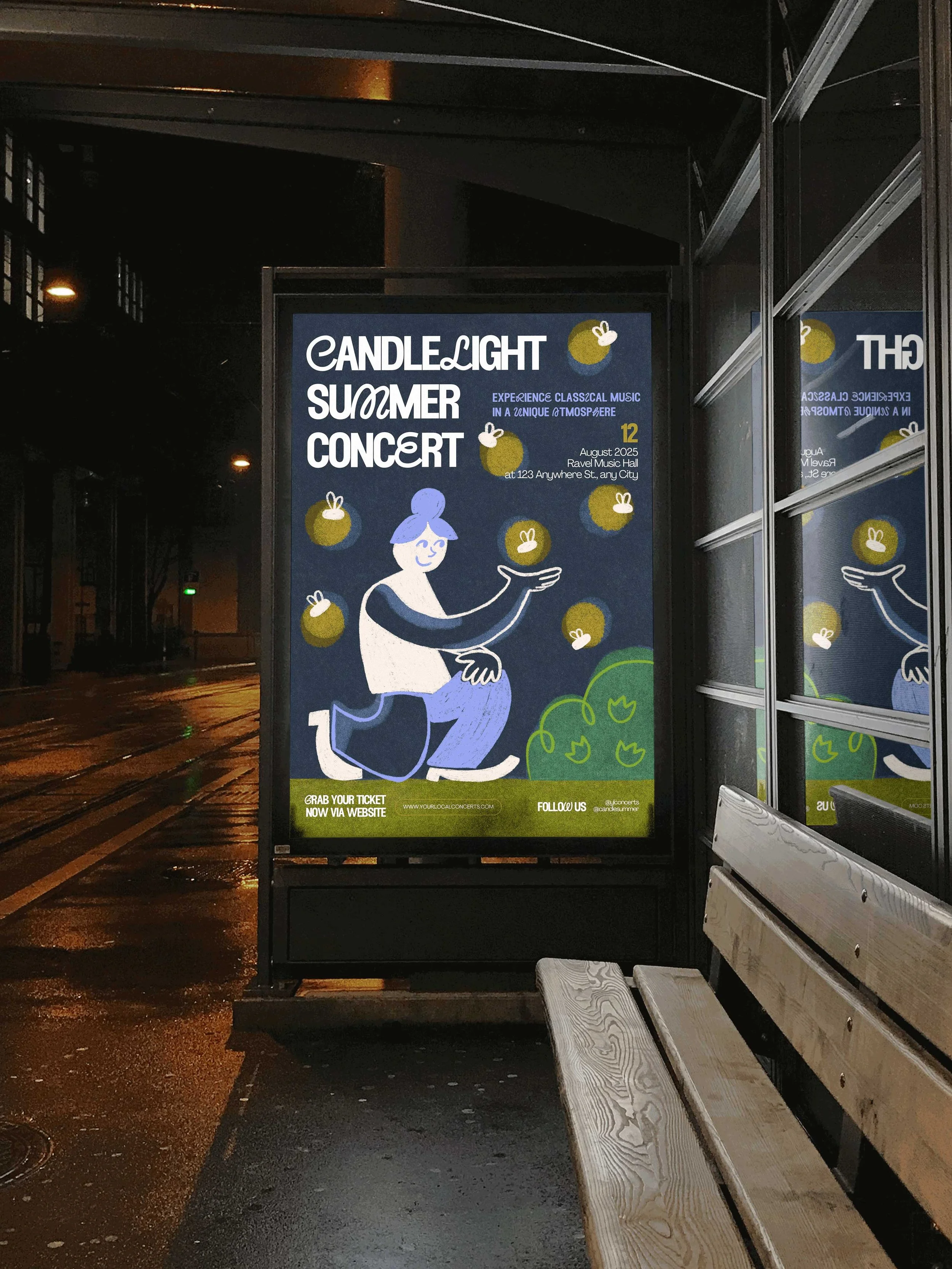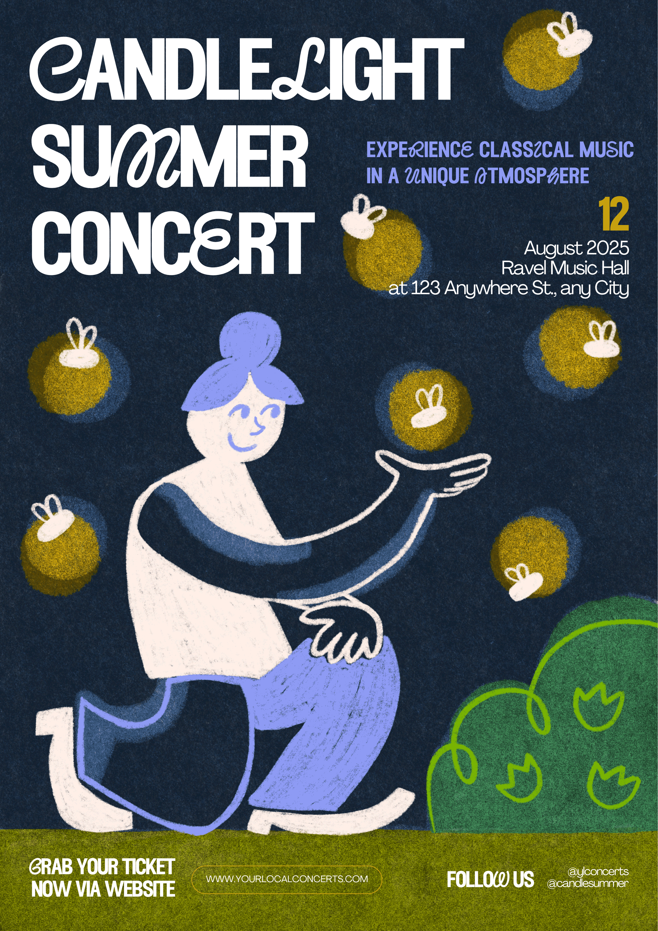 A dreamy, contemporary poster for a special outdoor event, blending warm, atmospheric tones with modern design to appeal both young people and classical music lovers.